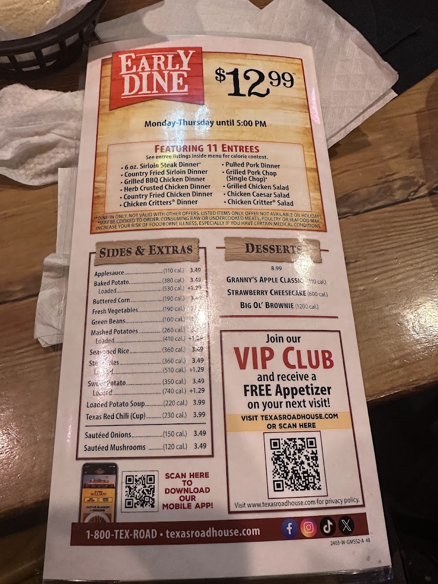 The menu at Texas Roadhouse offers a hearty, approachable selection typical of a classic American steakhouse. It focuses on satisfying, straightforward dishes that range from perfectly grilled steaks and ribs to flavorful burgers and comforting sides. This is the kind of place where longtime favorites meet familiar flavors, all prepared with care and served in generous portions.